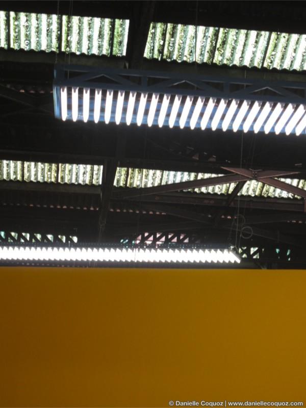 Ce sont de vieux entrepôts de la SNCF, des hangars immenses, d'une hauteur de cathédrale, réaffectés pour abriter l'illusion provisoire et tangible de la photographie. Entre les hangars, des espaces aménagés, à peine, propices à la pause et aux rencontres. C'est l'ambiance visuelle du Parc des Ateliers que j'ai eu envie de capturer. Mais au fait, qui est la mystérieuse silhouette qui s'invite dans la série et semble confondre photographie et cinéma ?